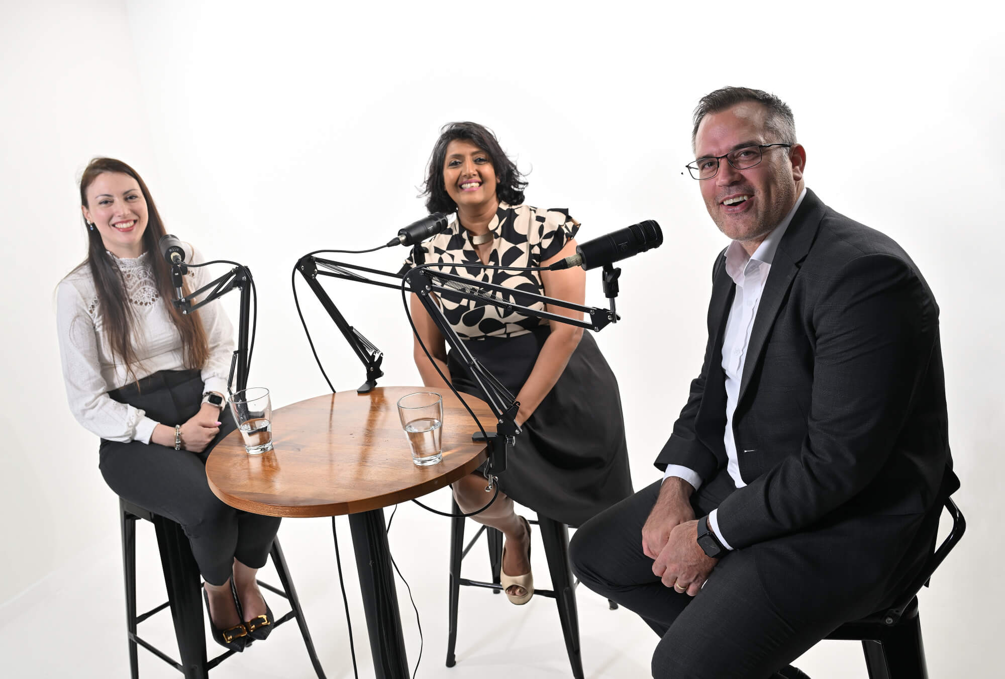 Krystel Bernard Knappova, People Partner at MCB, Deepa Bhookhun Rainer, Editorial Content Creator and Allan Freed, MCB Group Head of HR during the recording of MCB Talk's podcast.